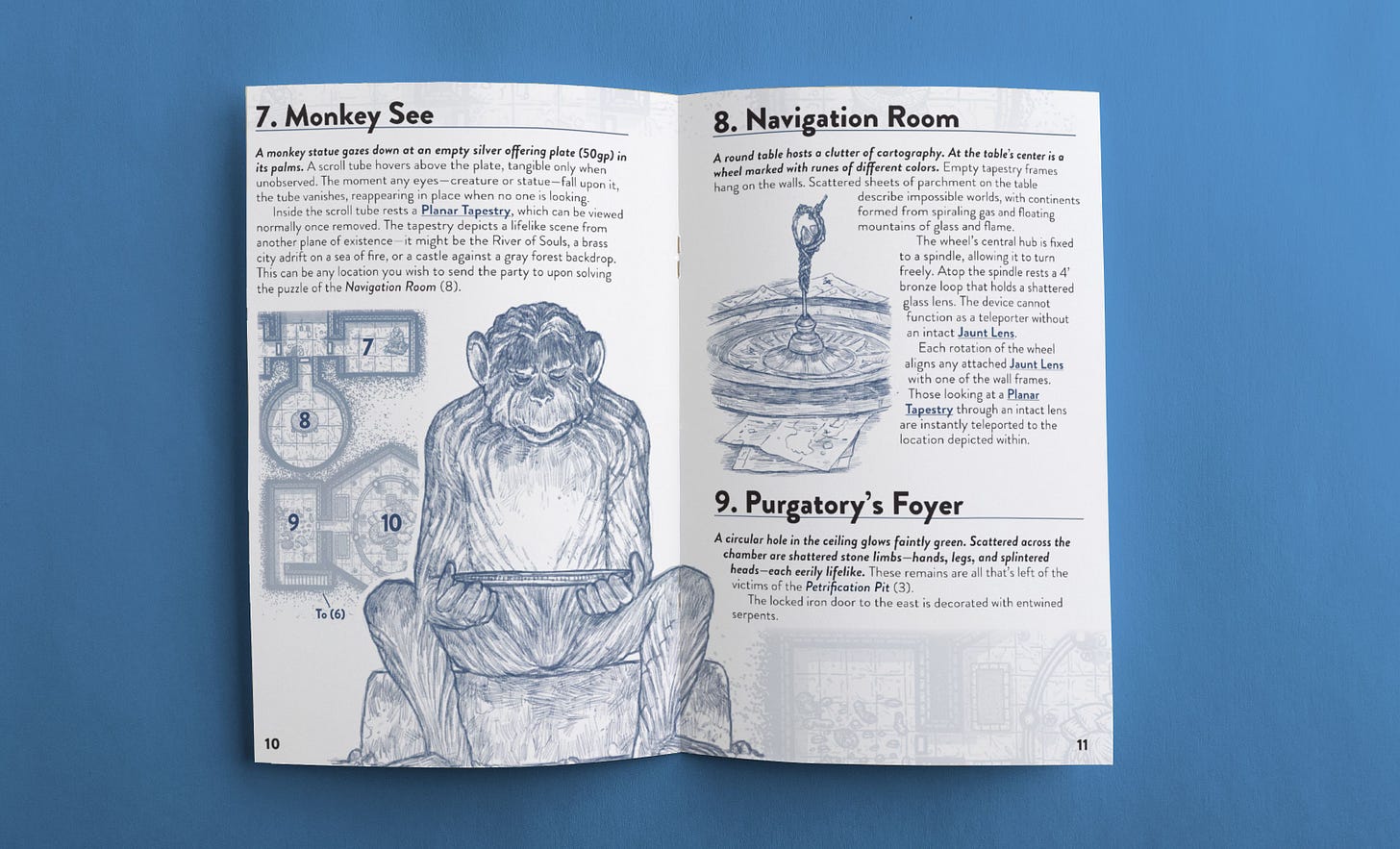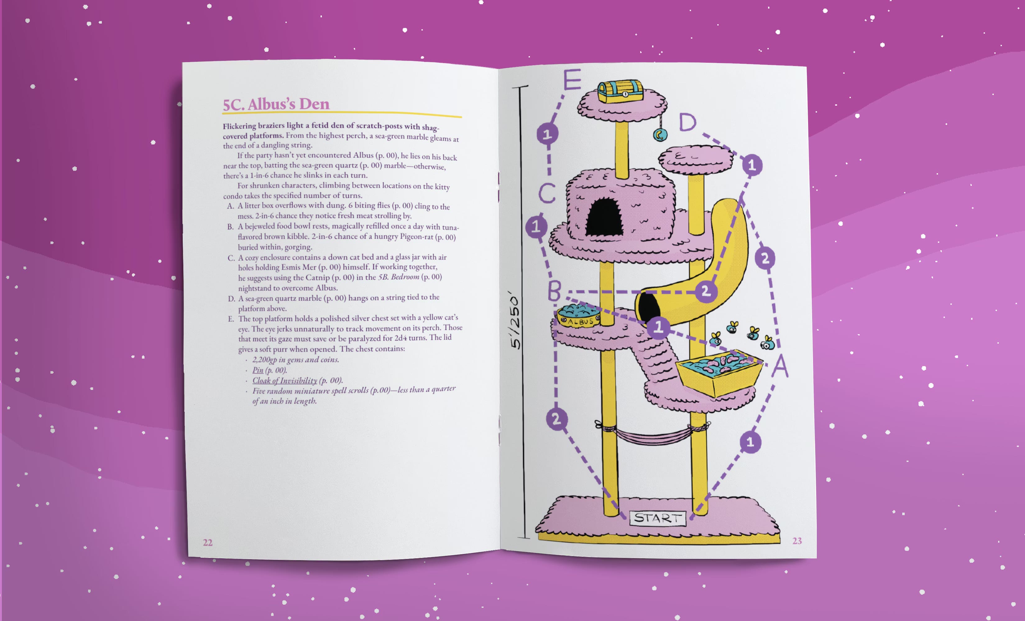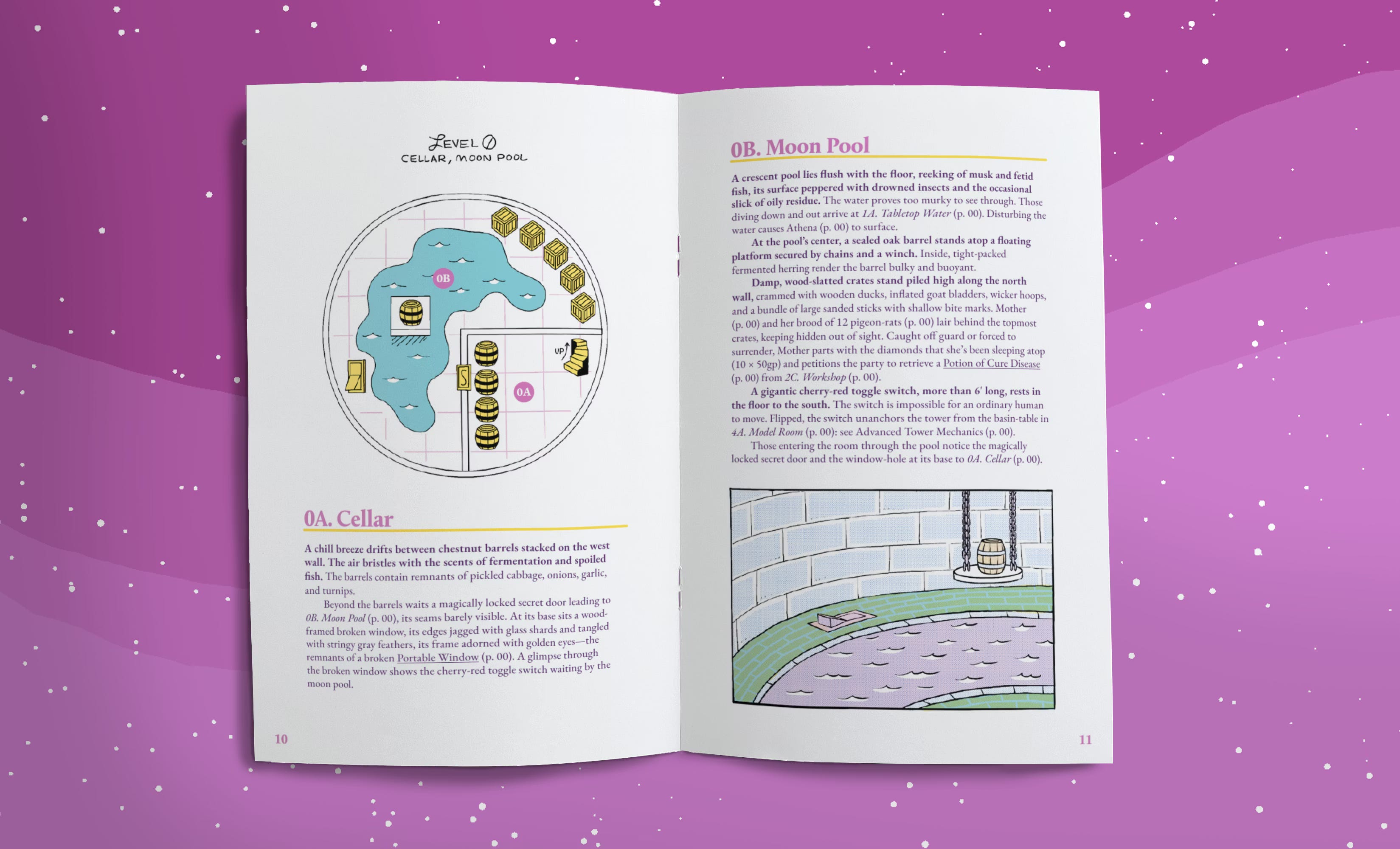 After over a year of work, A Familiar Tower is nearly finished. This is a 40-page, color, staple-bound zine that details an escape room-style wizard tower. There will be a digital-only option too if you just want the PDF, maps, and handouts. If you like The Legend of Zelda puzzle dungeons from Ocarina of Time, you’ll like this.