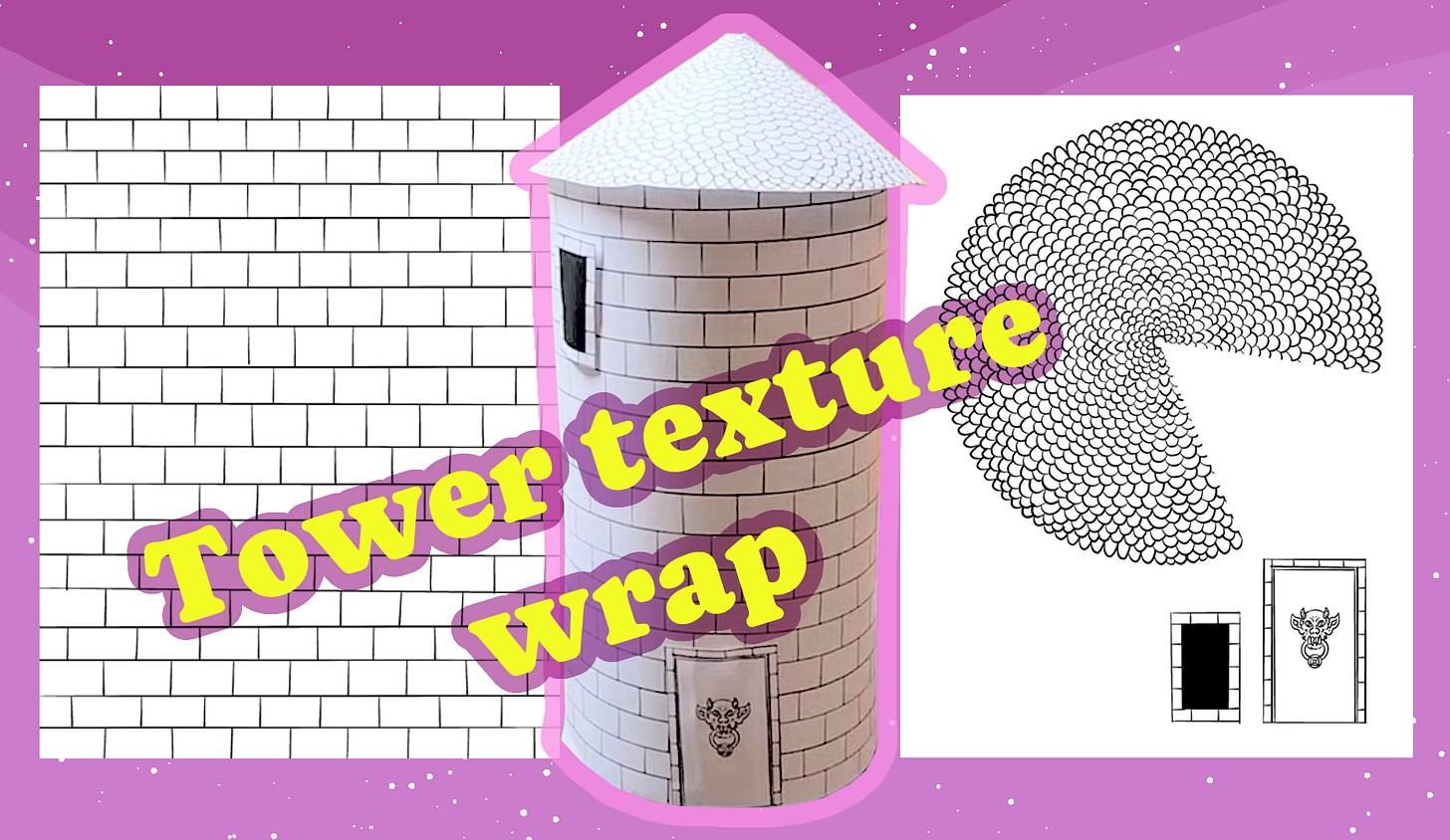 All art in A Familiar Tower is by Skullboy who has also provided a printable texture for folks to create their own wizard tower.