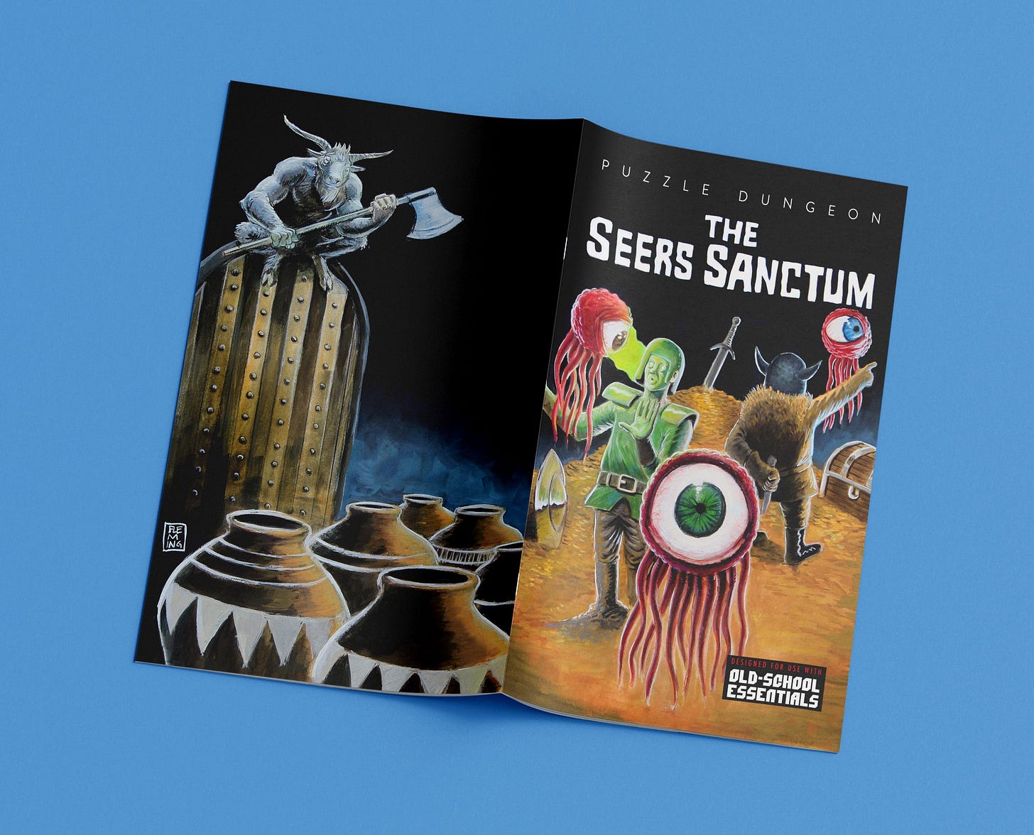 It’s been 5 years since Puzzle Dungeon: The Seers Sanctum was released. It now has tighter text, fresh layout by Jesse Winter, cover by Jacob Fleming, art and handouts by Munkao. If you already own Seers, you own the remaster. <3